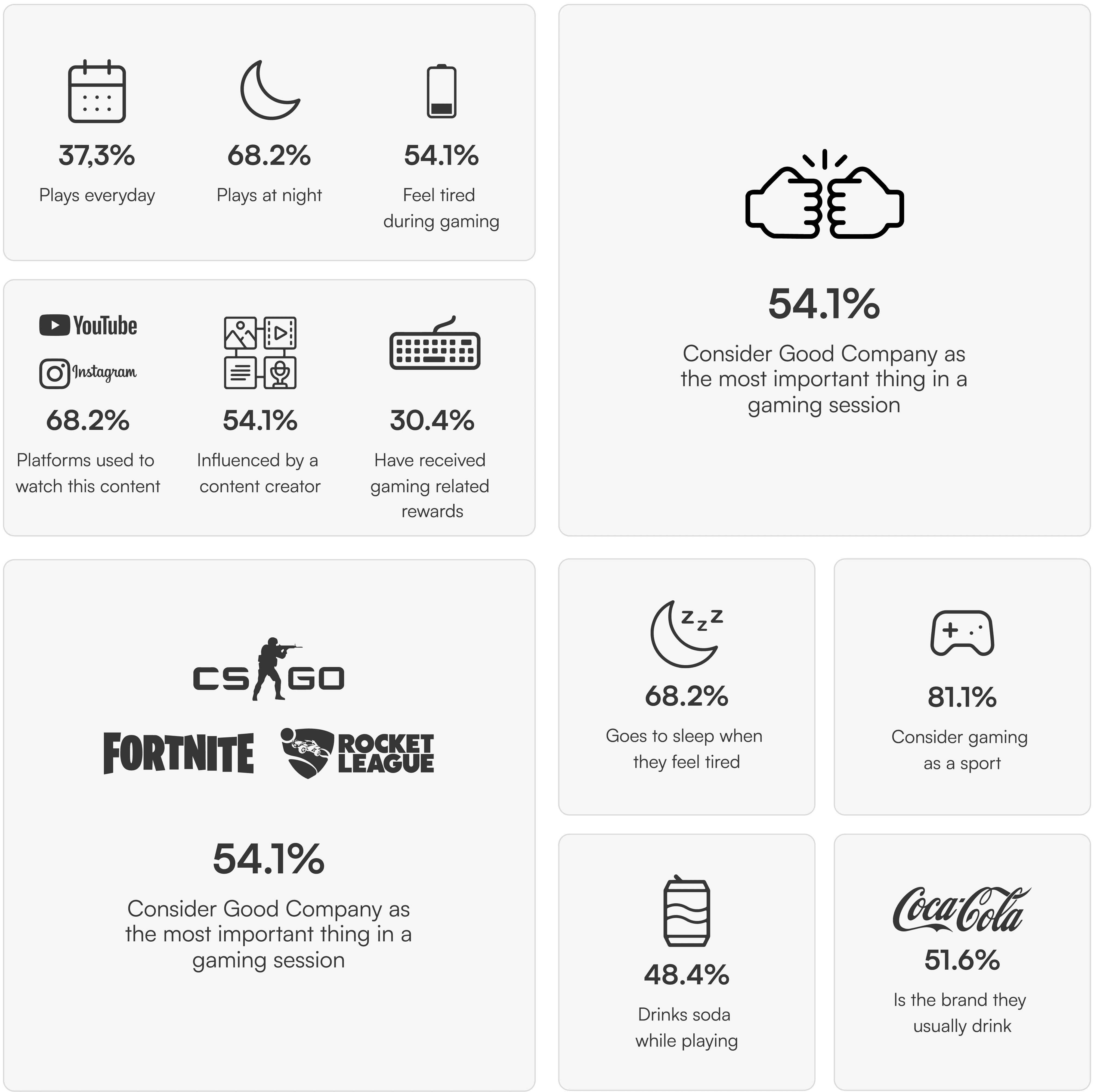 Our competitive analysis phase was marked by a comprehensive exploration of the gaming landscape. We explored direct and indirect competitors across platforms and social media channels. Our approach scrutinized sponsorship tactics, event activations, influencer collaborations, and product-related content. By identifying both successful strategies and areas for improvement, we gained insights to explore the best path for our challenge.